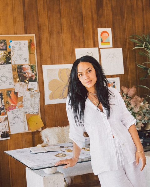 Maggi was born in Portland, Oregon where she grew up in an artistic home. She has no traditional training in fine art or jewelry- and instead describes her connection to creation simply as a lifestyle- one she learned early on from her parents. Her creative process is 100% intuitive. Whether it’s a piece of jewelry, apparel, an object, interior or landscape design, everything she creates begins with a simple sketch in her sketchbook.